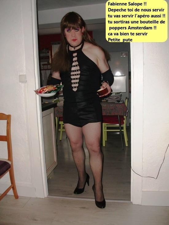 Feminizada en marica sumisa por Maitre D, gaseada con poppers everest, fabienne está completamente depilada, sexo en jaula y capullo de rosa en su coño. Se ofrece a los hombres como puta, marica o soubrette, según la noche.